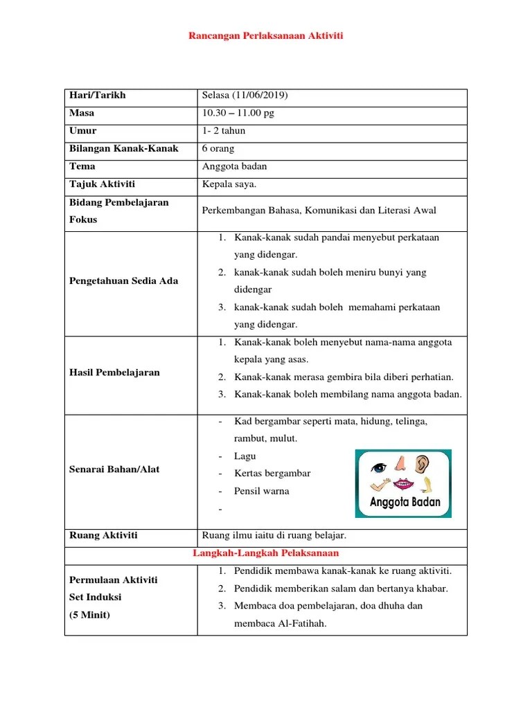 Pecahkan 10 rpa kepada 6 bidang perkembangan dan 1 pemakanan. Rancangan pelaksanaan aktiviti (rpa) siri kap _/2014 nama agensi . Perkembangan awal matematik dan permikiran logik. Perkembangan deria dan pemahaman dunia persekitaran. Jika hendak lihat atau rujuk banyak lagi contoh rpa, sila dapatkan ebook di bawah ini.